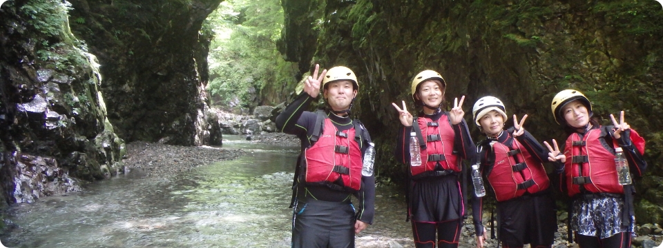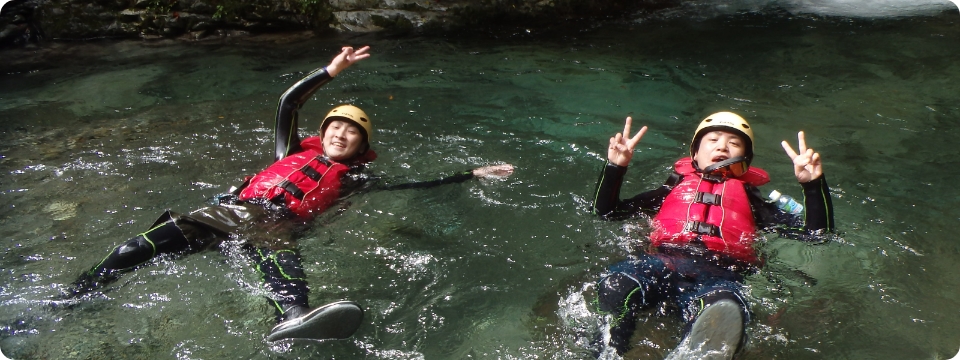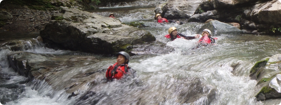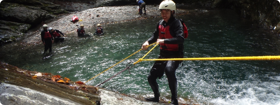 雄大な自然の中、清流に身をゆだねながらスリルと爽快感を味わえるのが「キャニオニング」です。岩肌を滑り降りたり、天然のウォータースライダーを滑走したり、透明度の高い水に飛び込んだり、まさに大自然を全身で感じるアクティビティ。